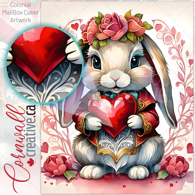 Pretty Valentine’s Bunny Colonial Mailbox Cover