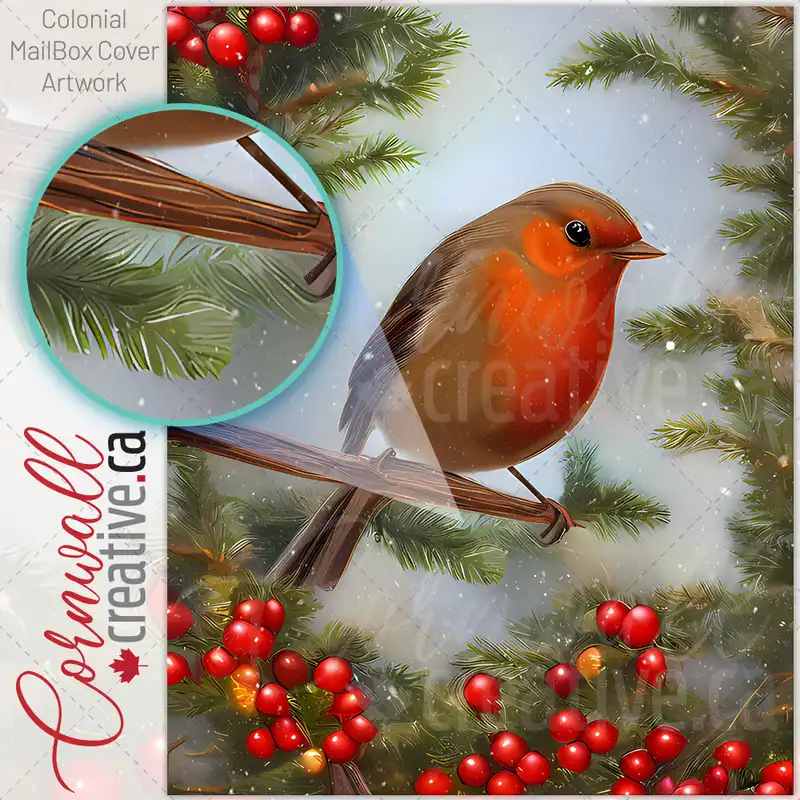 Pretty Winter Robin Colonial Mailbox Cover