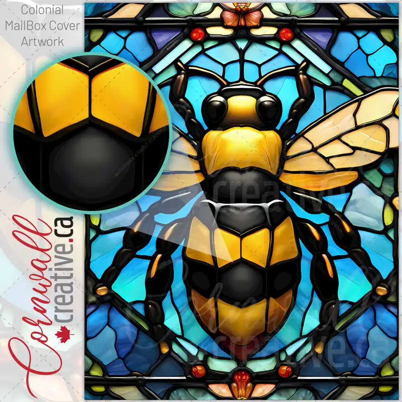 Stained Glass Pretty Bumblebee Colonial Mailbox Cover