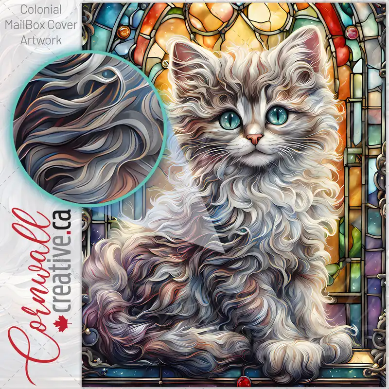 Stained Glass Pretty Kitten Colonial Mailbox Cover