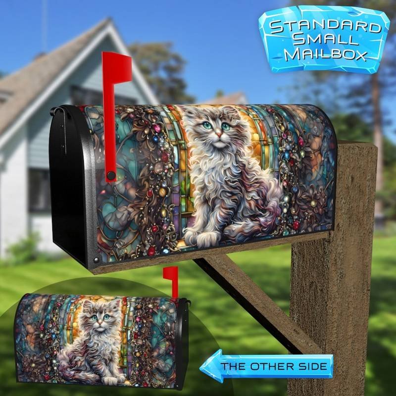 Stained Glass Pretty Kitten Rural Farm Mailbox Cover