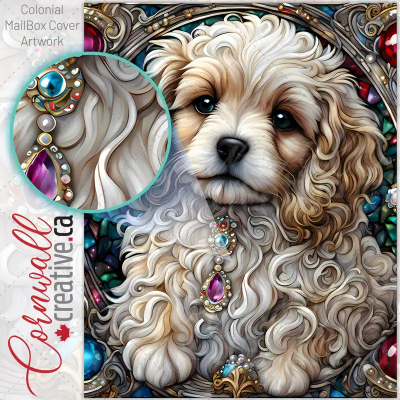 Stained Glass Pretty Puppy Colonial Mailbox Cover