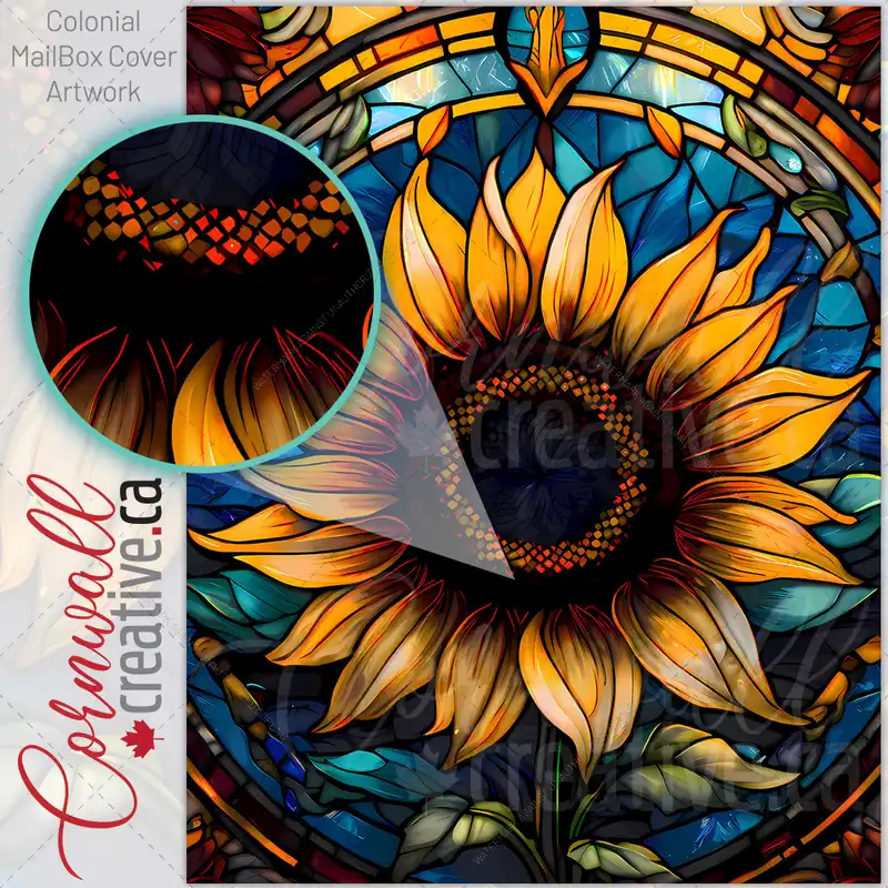 Stained Glass Pretty Sunflower Colonial Mailbox Cover