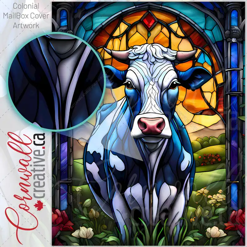 Stained Glass Pretty Cow Colonial Mailbox Cover