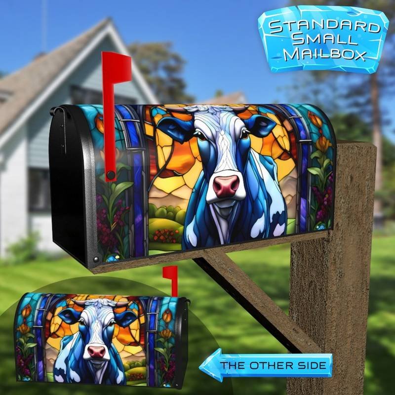 Stained Glass Pretty Cow Rural Farm Mailbox Cover