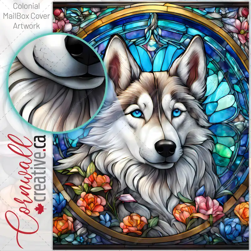 Stained Glass Pretty Husky Colonial Mailbox Cover