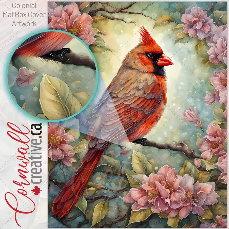 Pretty Cardinal on the Blooming Tree Colonial Mailbox Cover