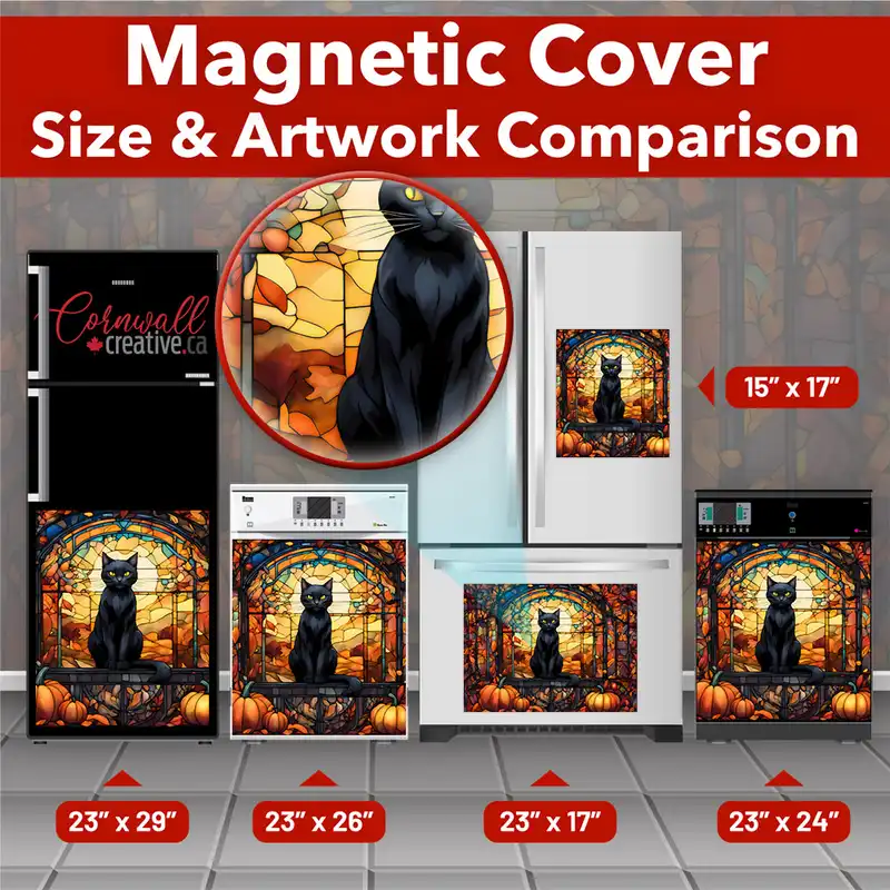 CA$19.95Dress-up your kitchen effortlessly with this stunning Stained Glass Black Cat and Pumpkins Magnetic Dishwasher Door Cover! Keep in mind that while this cover works with most dishwashers, some stainless steel and plastic doors might not hold magnets. There are two types of stainless steel: one that attracts magnets well and another that does not, […]