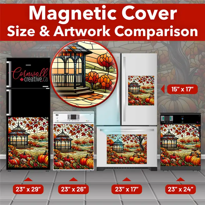 CA$19.95Prettify your kitchen effortlessly with this stunning Stained Glass Gazebo and Pumpkins Magnetic Dishwasher Door Cover! Keep in mind that while this cover works with most dishwashers, some stainless steel and plastic doors might not hold magnets. There are two types of stainless steel: one that attracts magnets well and another that does not, and […]