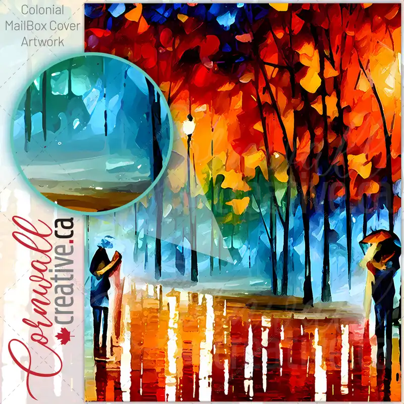 Enhance your Mailbox and your neighborhood with this brilliant Couple Walking in a Rainy City Colonial magnetic or self adhesive vinyl Mailbox Cover. Our magnetic covers feature a complete magnetic surface throughout the entire design, unlike lower-quality options that only incorporate two magnet strips combined with a piece of canvas. This ensures better functionality and […]