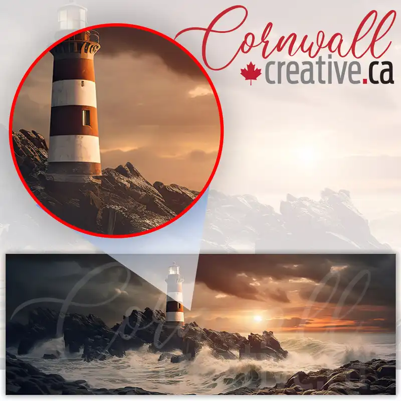 Beautiful Red and White Striped Lighthouse On The Rock Scene Colonial Mailbox Cover