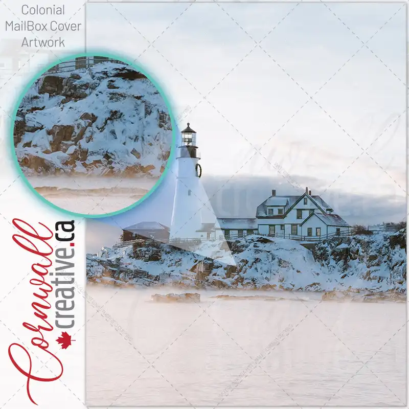 Lighthouse On Snowy Rocks Winter Scene Colonial Mailbox Cover