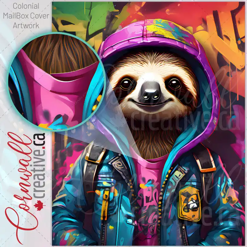 The Coolest Sloth in the City Colonial Mailbox Cover