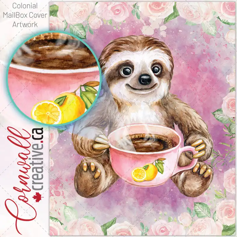 Little Sloth Drinking Tea Colonial Mailbox Cover