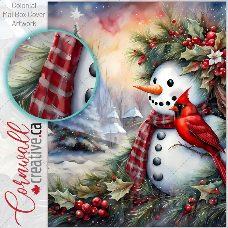 Snowman with a Sign and Cardinal Colonial Mailbox Cover