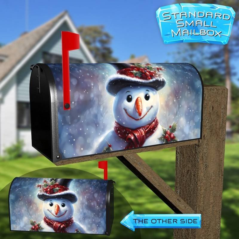 Snowman in the Falling Snow Rural Farm Mailbox Cover