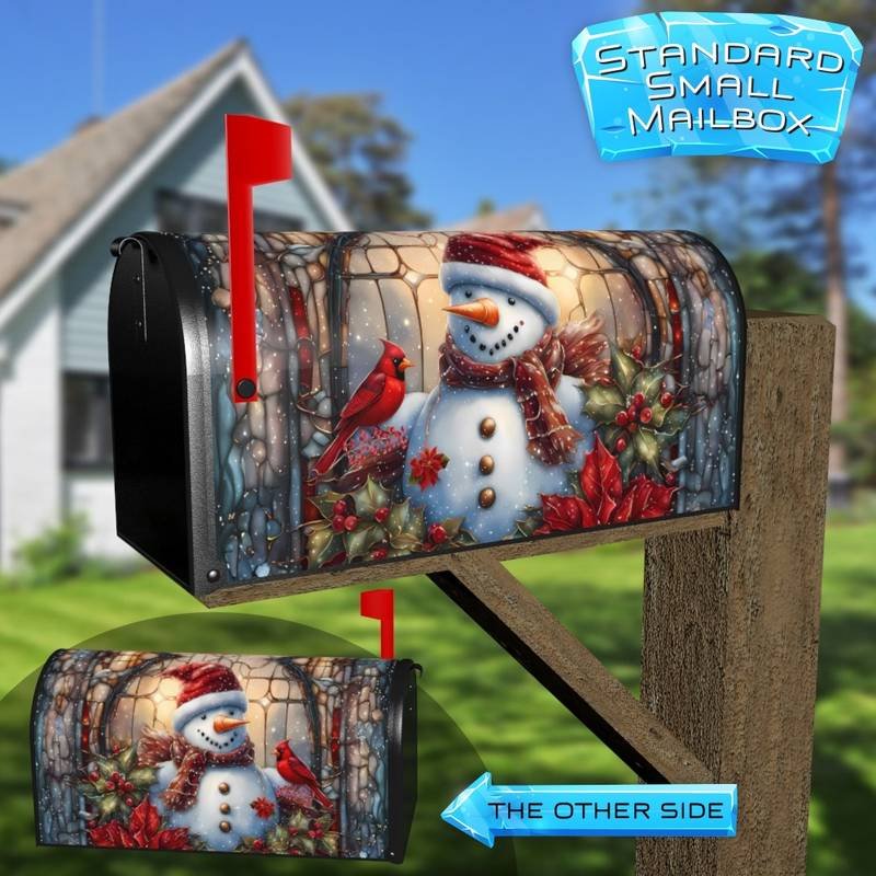 Stained Glass Snowman and Cardinal Rural Farm Mailbox Cover