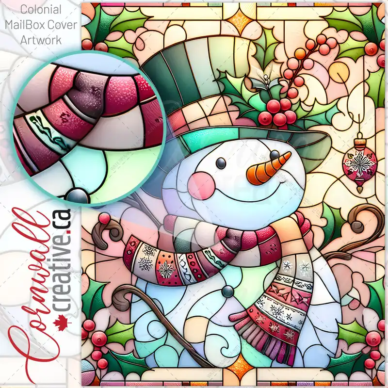 Stained Glass Pastel Snowman Colonial Mailbox Cover