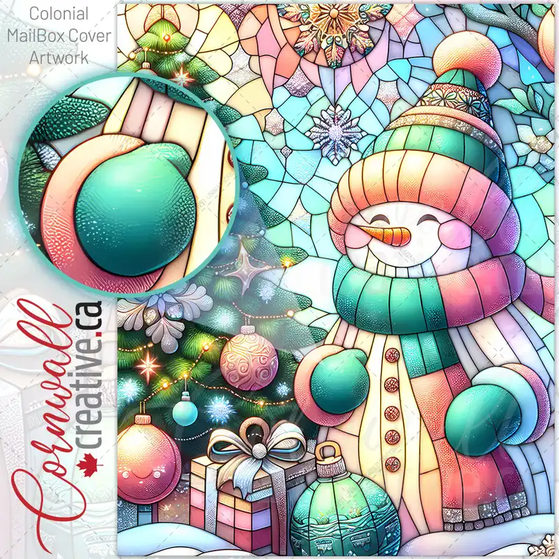 Stained Glass Pastel Snowman and Christmas Tree Colonial Mailbox Cover