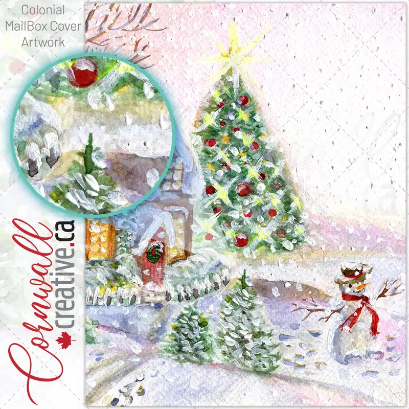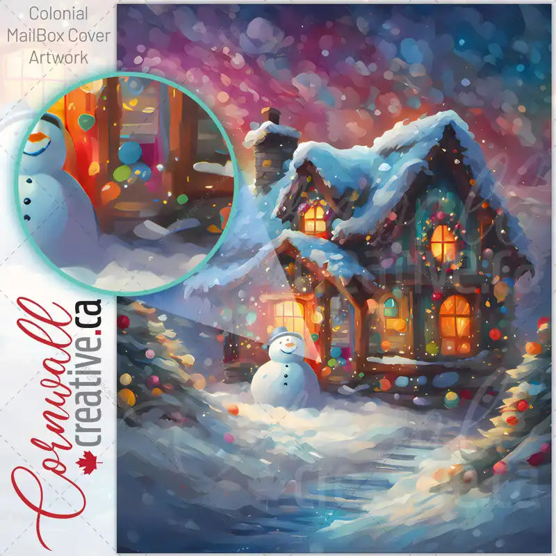 Cozy Cottage and Snowman Colonial Mailbox Cover