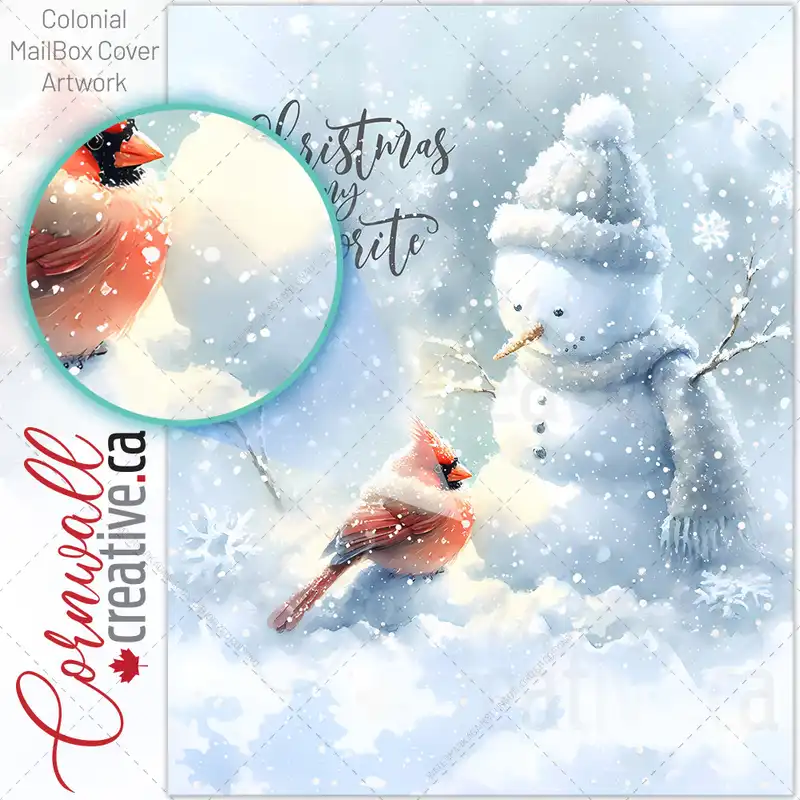 Cute Christmas Snowman and Cardinal Colonial Mailbox Cover
