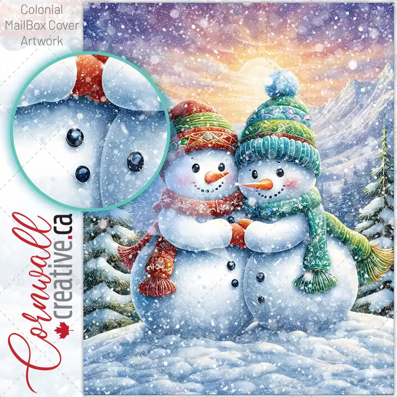 Cute Snowman Couple Colonial Mailbox Cover