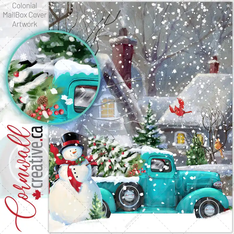 Heirloom Pickup Truck with Snowman Colonial Mailbox Cover