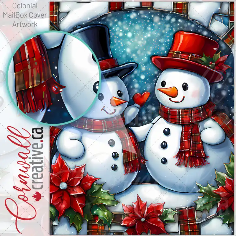 Two Stained Glass Snowman Colonial Mailbox Cover