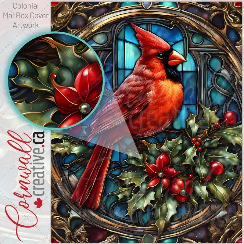 Pretty Stained Glass Cardinal Colonial Mailbox Cover