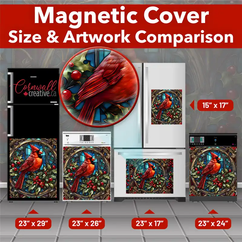 Pretty Stained Glass Cardinal Magnetic Dishwasher Door Cover