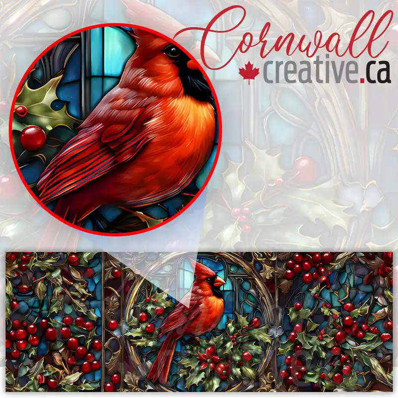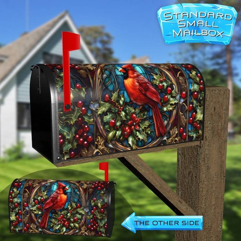 Pretty Stained Glass Cardinal Rural Farm Mailbox Cover