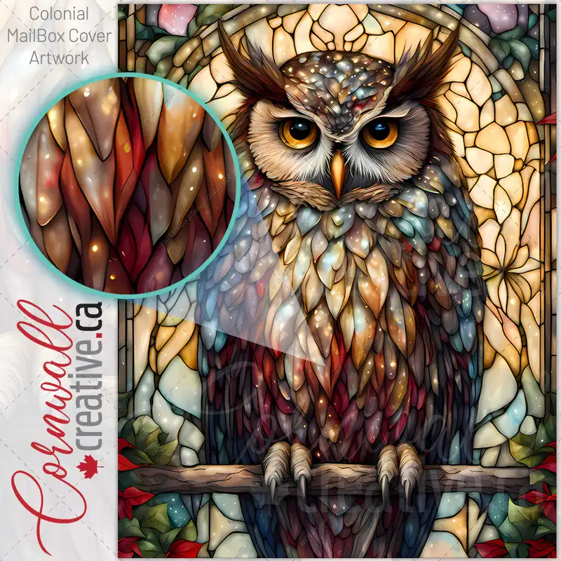 Pretty Stained Glass Christmas Owl Colonial Mailbox Cover
