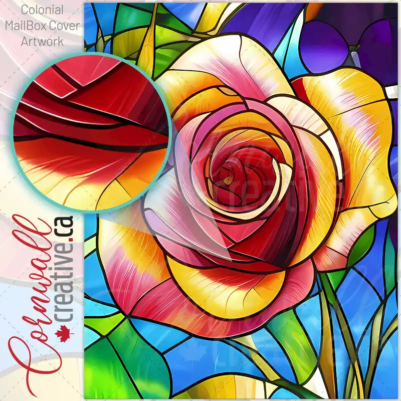Gorgeous Stained Glass Rose Colonial Mailbox Cover