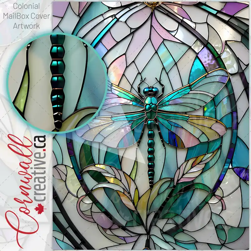 Pretty Stained Glass Dragonfly Colonial Mailbox Cover