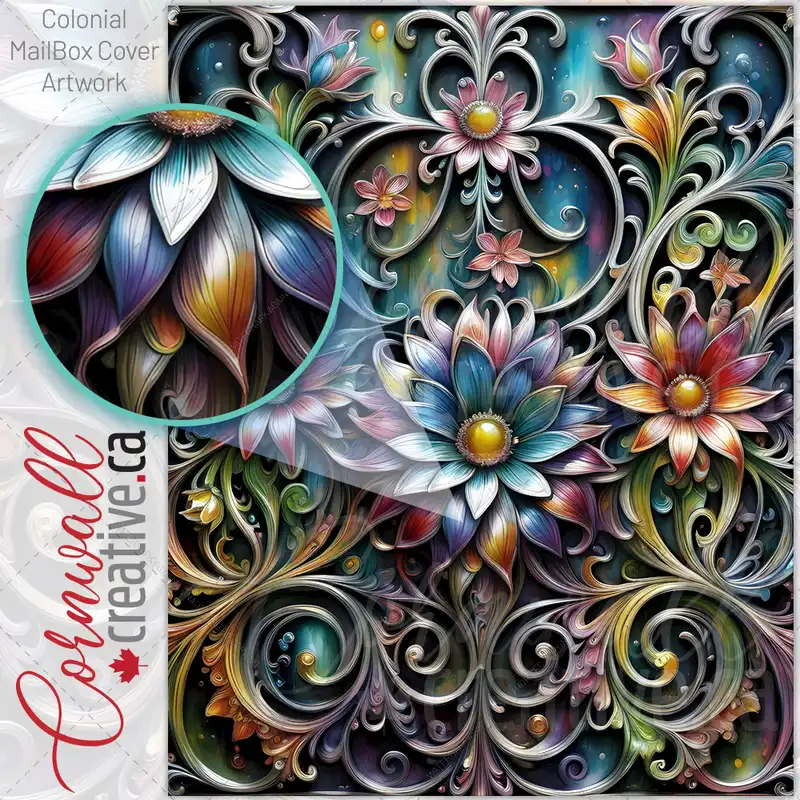 Pretty Stained Glass Flowers Colonial Mailbox Cover