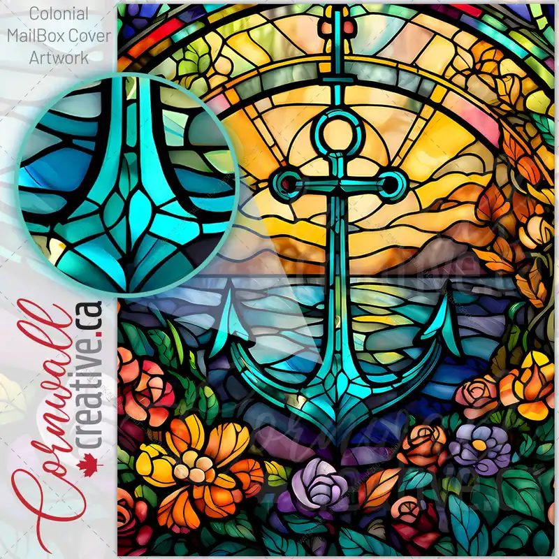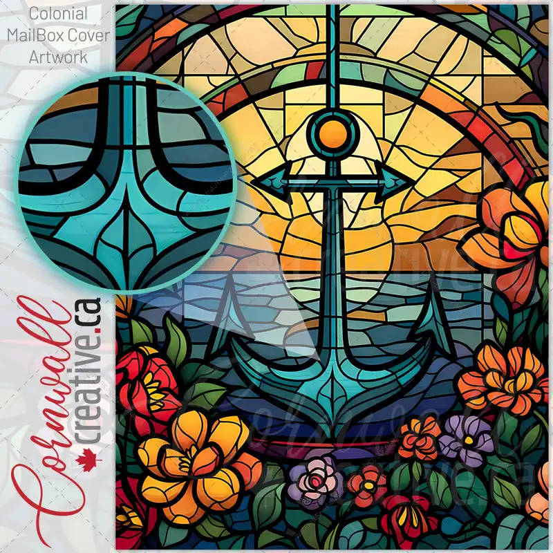 Stained Glass Anchor and Flowers Colonial Mailbox Cover