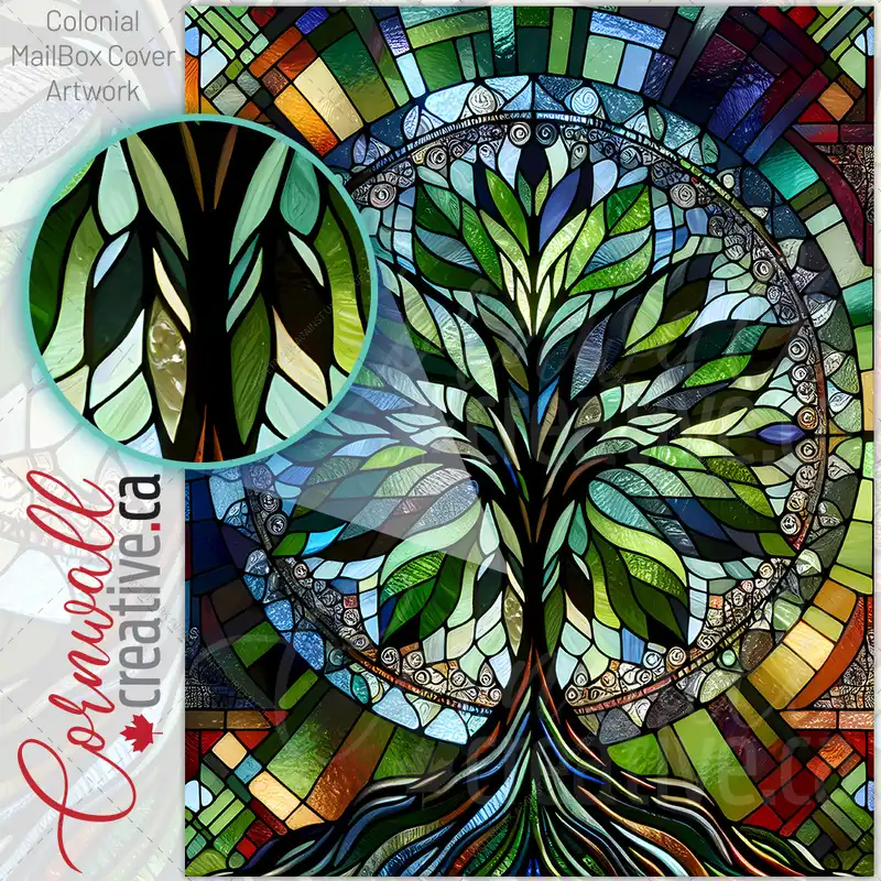 Stained Glass Abstract Tree Colonial Mailbox Cover