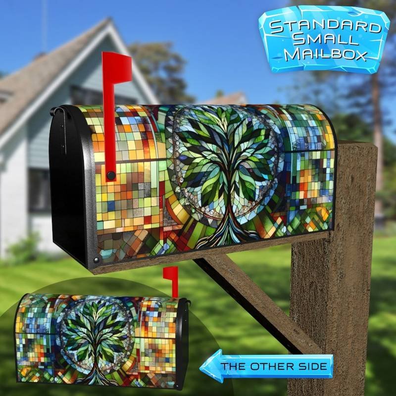 Stained Glass Abstract Tree Rural Farm Mailbox Cover
