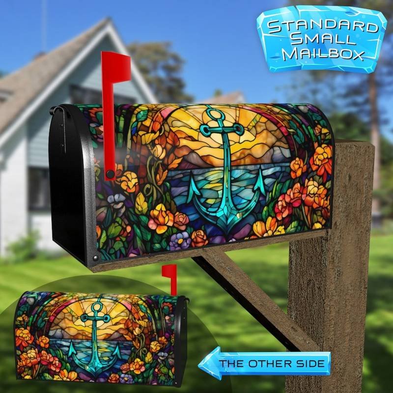 Stained Glass Anchor and Flowers Rural Farm Mailbox Cover