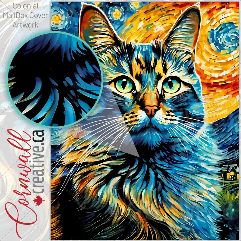 Starry Night Fluffy Cat Colonial Mailbox Cover
