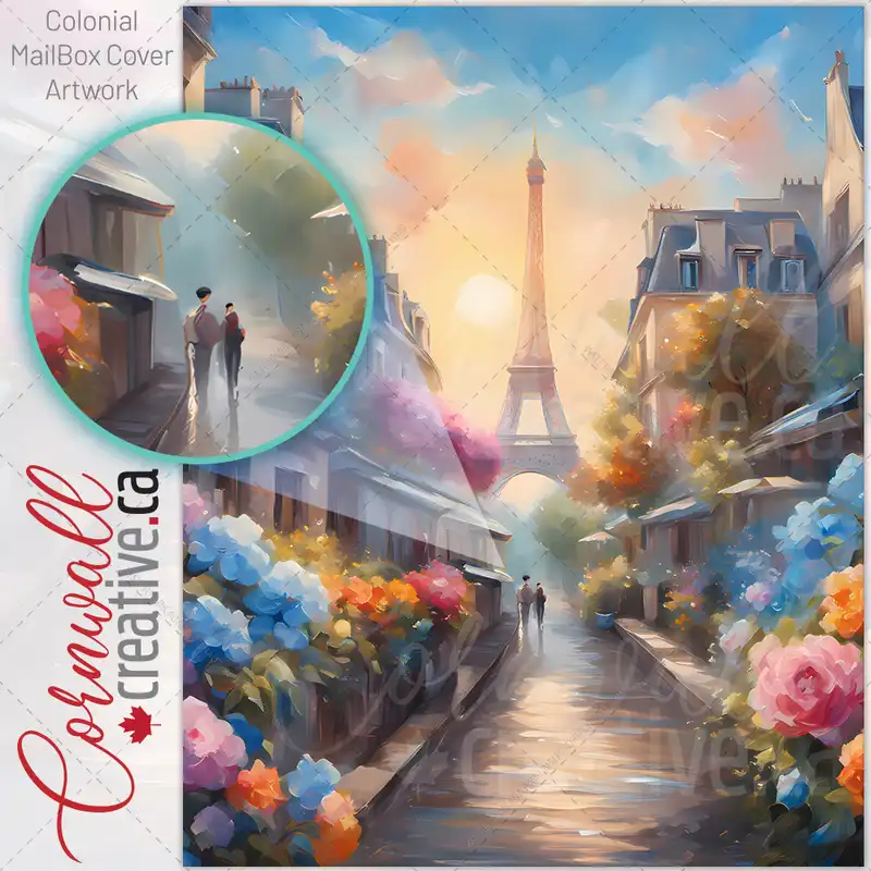 Summertime Eiffel Tower Colonial Mailbox Cover
