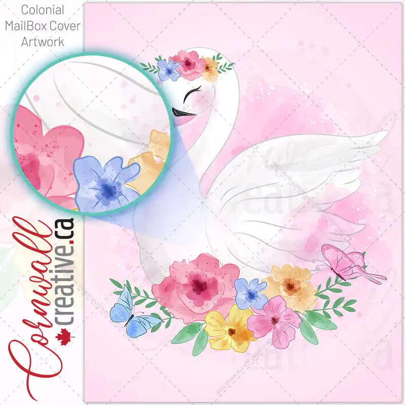 Gorgeous Swan and Flowers Colonial Mailbox Cover