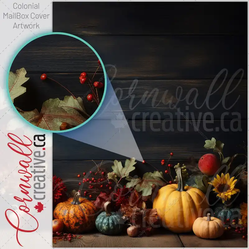 Pumpkins Gourds On Wooden Table Thanksgiving Day Colonial Mailbox Cover