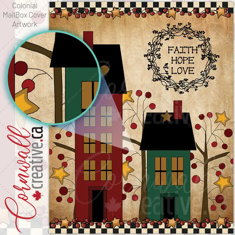 Saltbox Houses and Pip Berry Trees Colonial Mailbox Cover