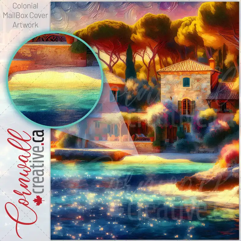 Italian Villas Near the Sea Colonial Mailbox Cover