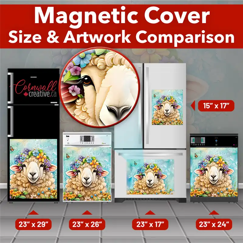 Whimsical Flower Sheep Magnetic Dishwasher Door Cover