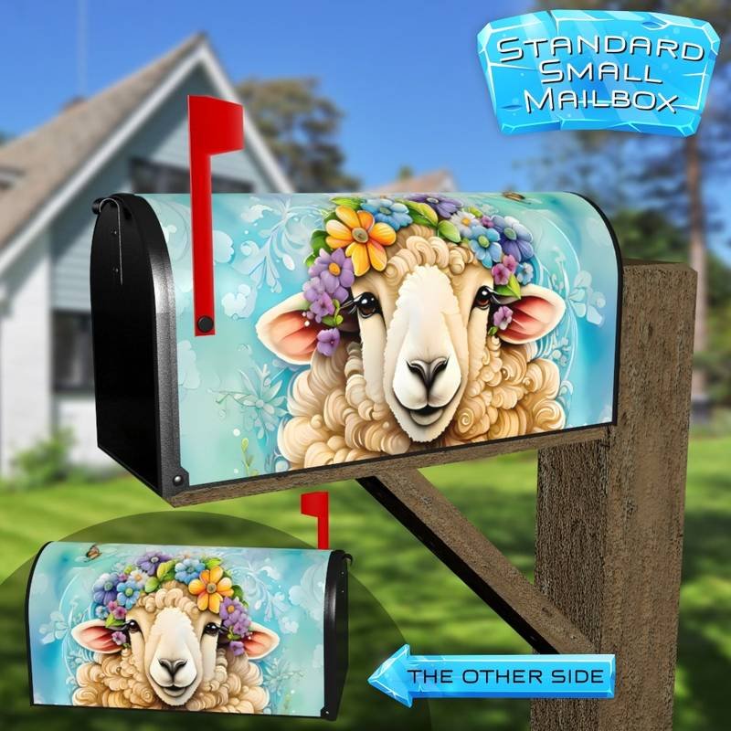Whimsical Flower Sheep Rural Farm Mailbox Cover