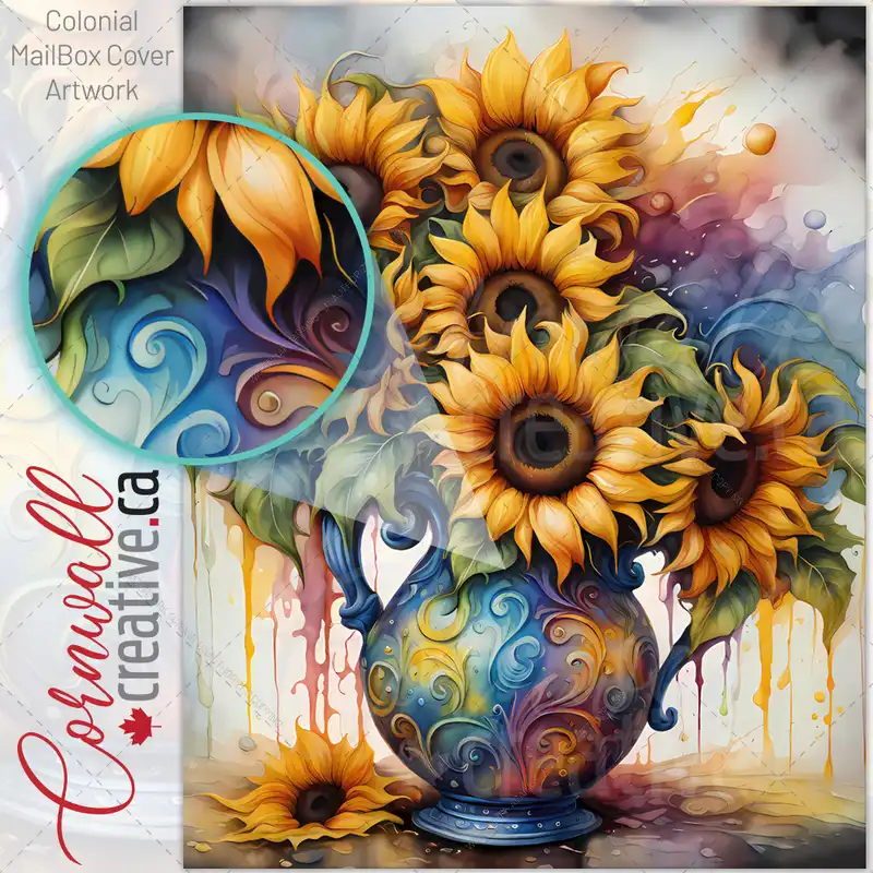 Whimsical Sunflowers in a Vase Colonial Mailbox Cover