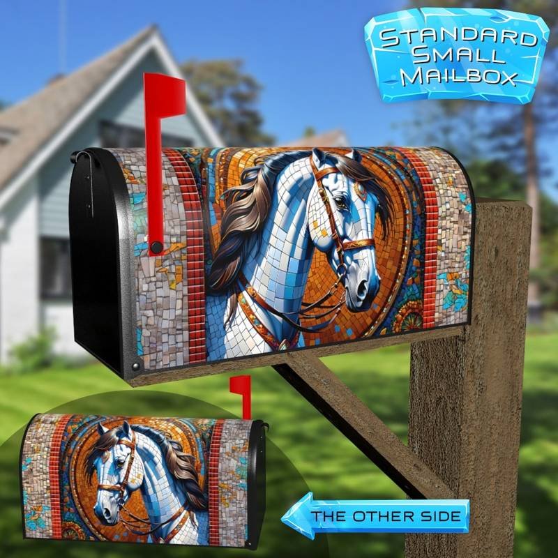 Beautiful Mosaic White Stallion Rural Farm Mailbox Cover