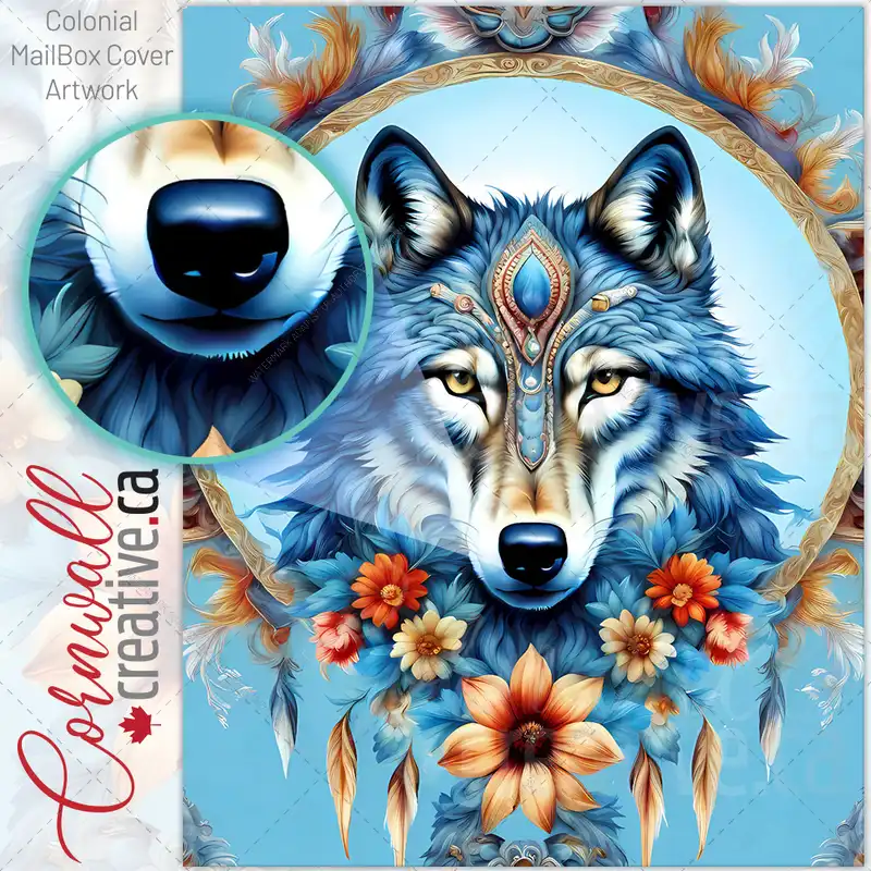 Native Wolf Dreamcatcher Colonial Mailbox Cover